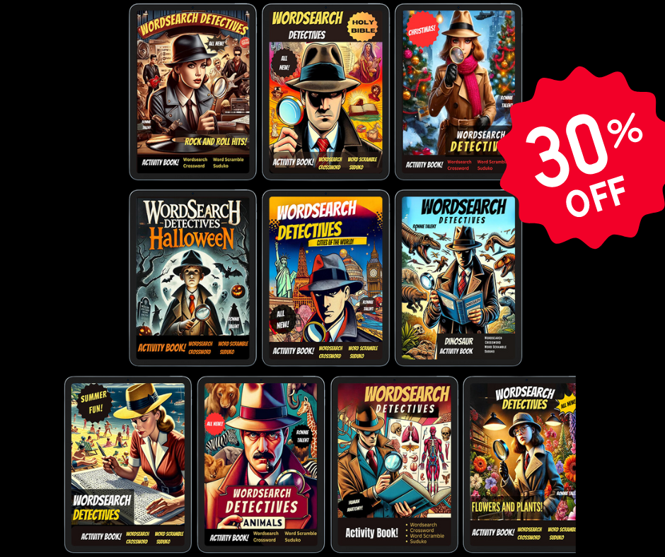 Enhance your word finding skills with our Wordsearch 10 Pack Bundle. This bundle includes 10 wordsearch books at a discounted price of 30%. Perfect for challenging your brain and improving your vocabulary.